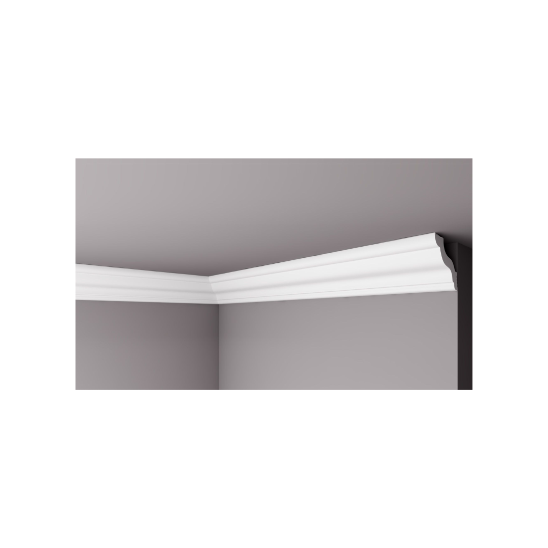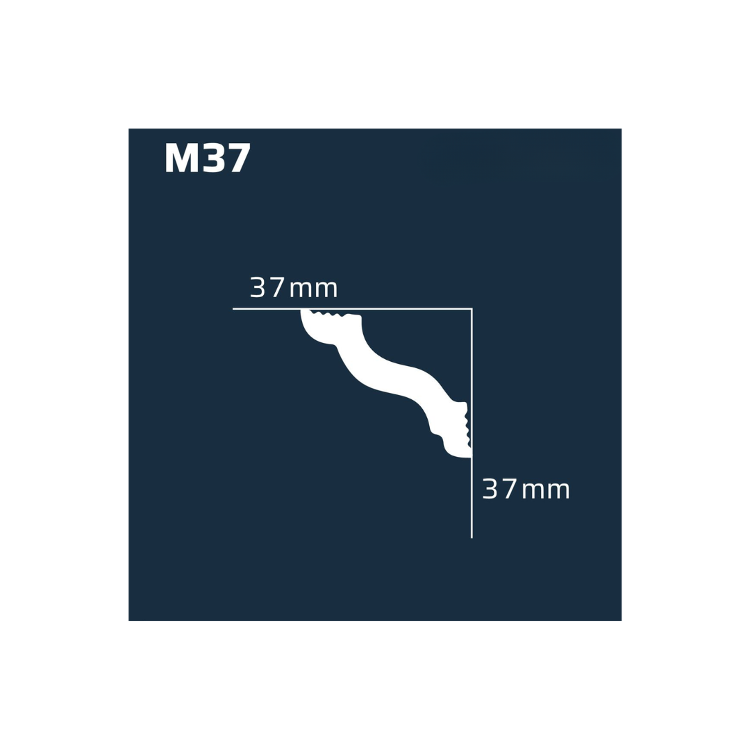 Perfecta para interiores clásicos o modernos, la M37 enmarca con estilo la unión entre techo y pared, creando un efecto visual que amplía y realza los espacios.