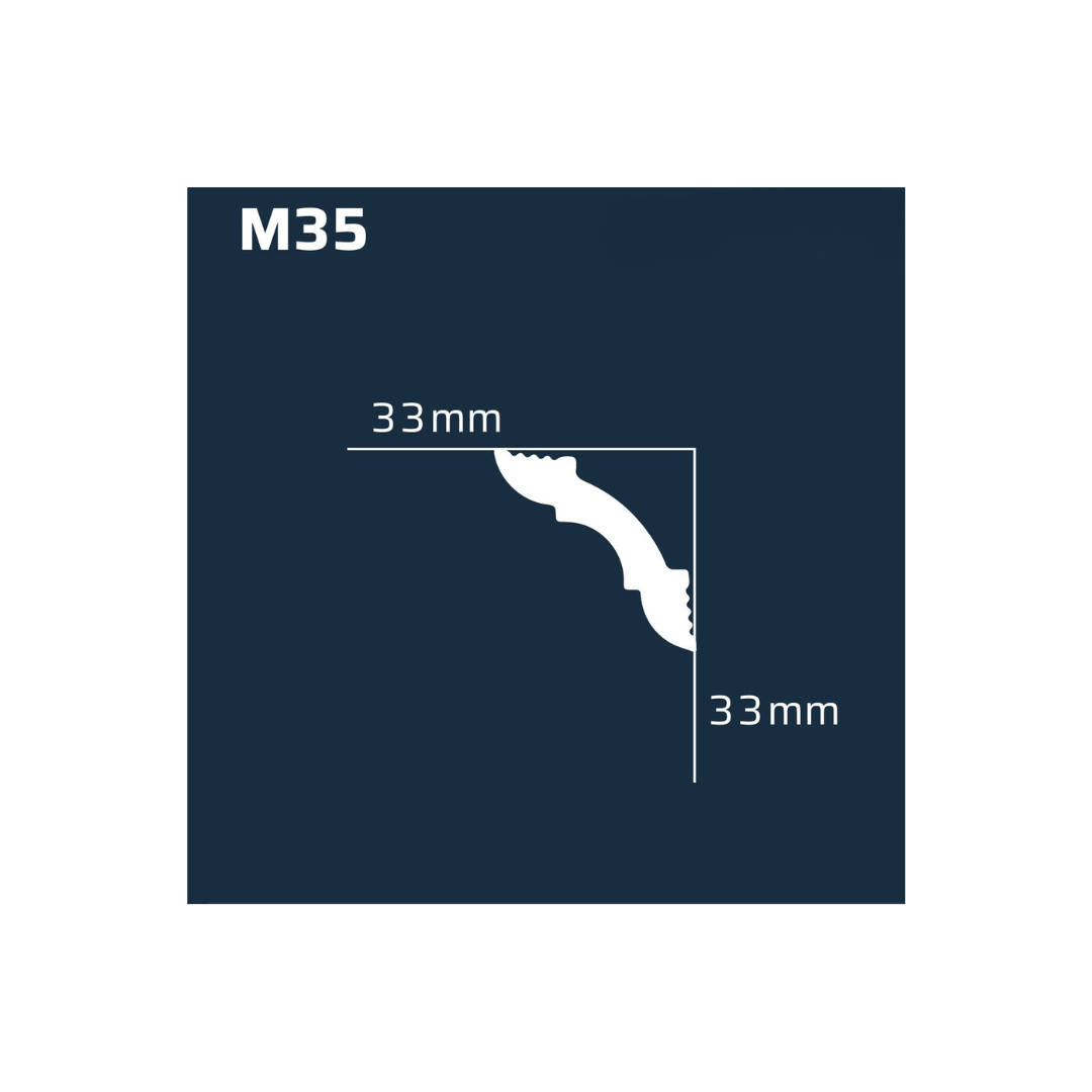 La moldura M35 de EPS presenta un perfil clásico y sofisticado, con curvas suaves y detalles definidos. Su acabado blanco permite pintarla y adaptarse a cualquier estilo decorativo, ya sea moderno o tradicional.